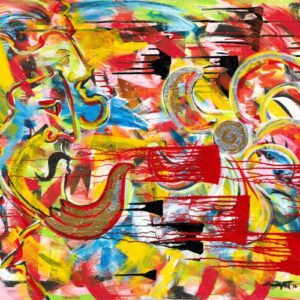 Acrylic on canvas with metal leaf